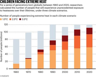 That children and young people will bear the brunt of the climate-change burden is not a new idea. But the latest study is among the first to pinpoint the generations and numbers of people that will experience an “unprecedented life” in terms of extreme heat, says Thiery (see ‘Children facing extreme heat’).